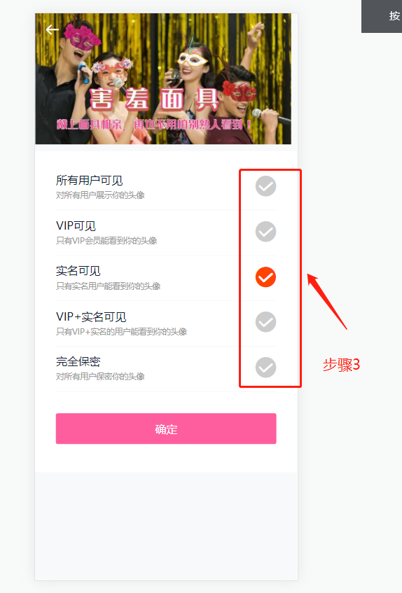 3个操作步骤即可实现开启害羞面具,具体看下图: